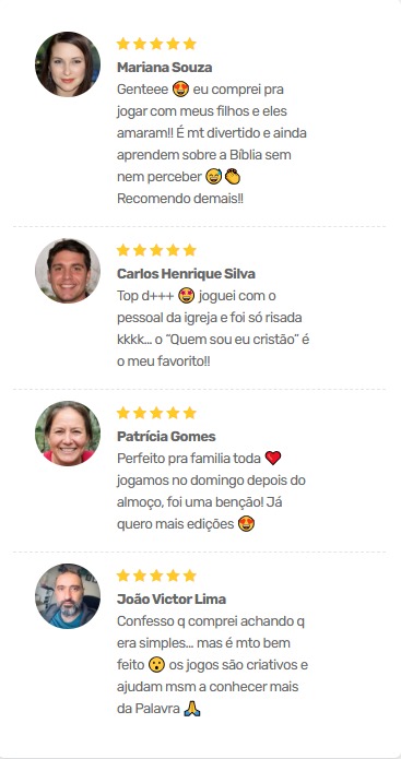 Depoimentos reais mostram como nossos jogos tornam o estudo da Palavra de Deus uma experiência divertida, interativa e cheia de descobertas para os pequenos.